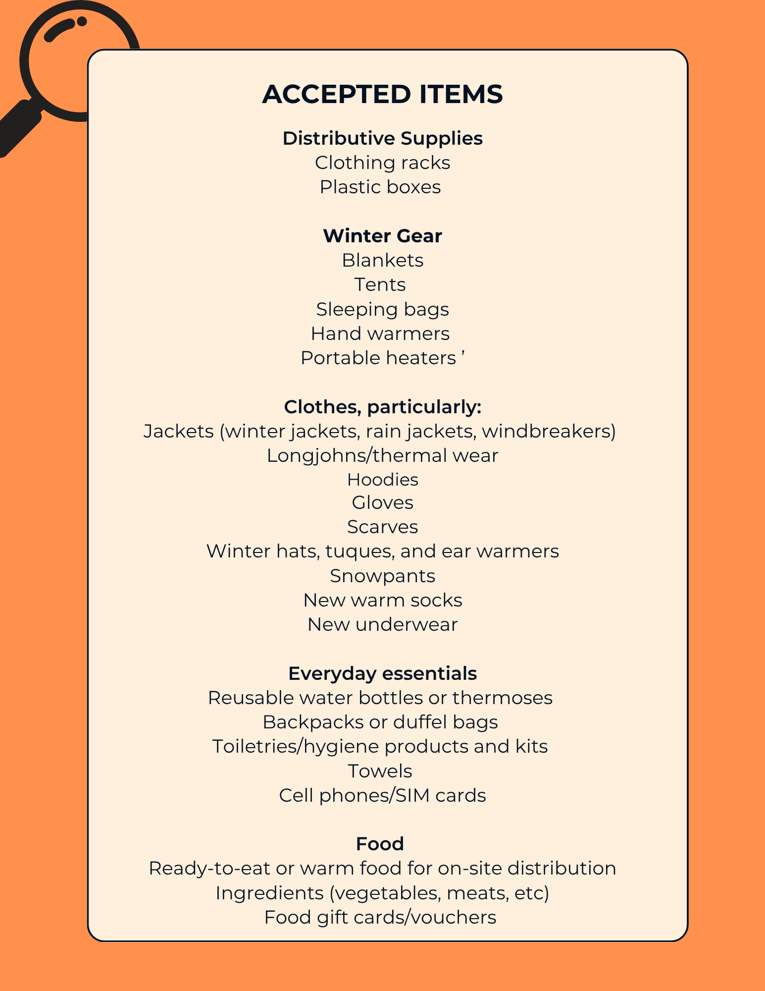 ITEMS NEEDED WINTER 2025